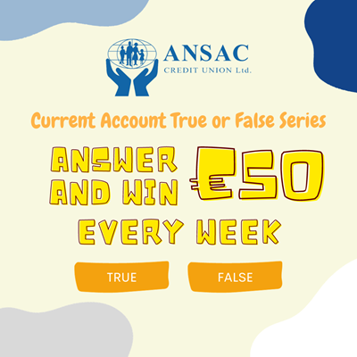- The competition will run for 6 consecutive weeks commencing 17th November 2023, with each week’s question posted on the ANSAC Credit Union social media accounts: Facebook, Instagram and Twitter which will provide a link to a question on Survey Monkey every Friday during the six-week period between 17th November – 22nd December.